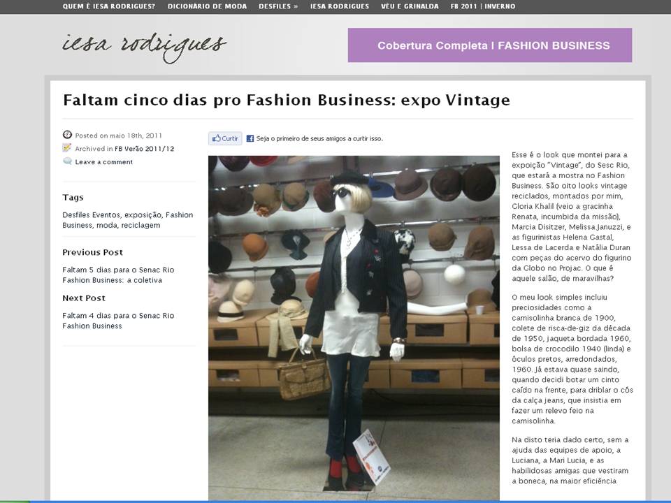 Exposição Expo Vintage – Fashion Business , trabalhos nos bastidores…