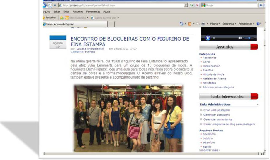 O Blog do figurino, foi um projeto que eu apresentei em 2010, mas só se concretizou agora! A proposta foi criar um espaço virtual com as peças do Acervo de Figurino para aumentar o giro e facilitar o acesso dos figurinistas, cenógrafos e produtores de arte.