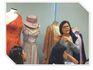 Outro projeto que eu participei este ano, foi ministrar aulas aos sábados de História da Moda para o grupo de apoio ao figurino. A elaboração da apostila foi minha e usei as próprias roupas do acervo.