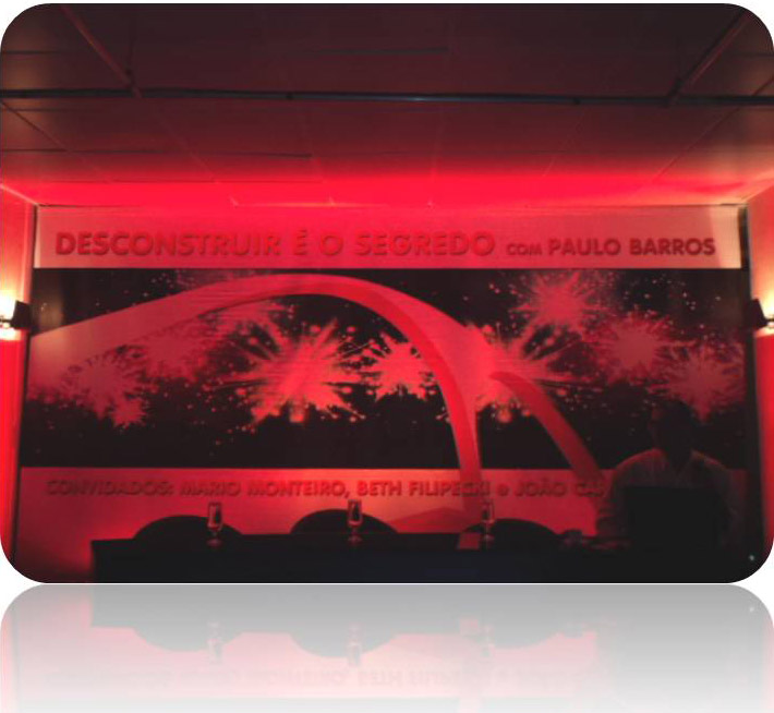 Produção “Pierrot e Colombina” inspirada em J. Carlos e Erté para a palestra “Desconstruir é o Segredo” de Paulo Barros no Projac.