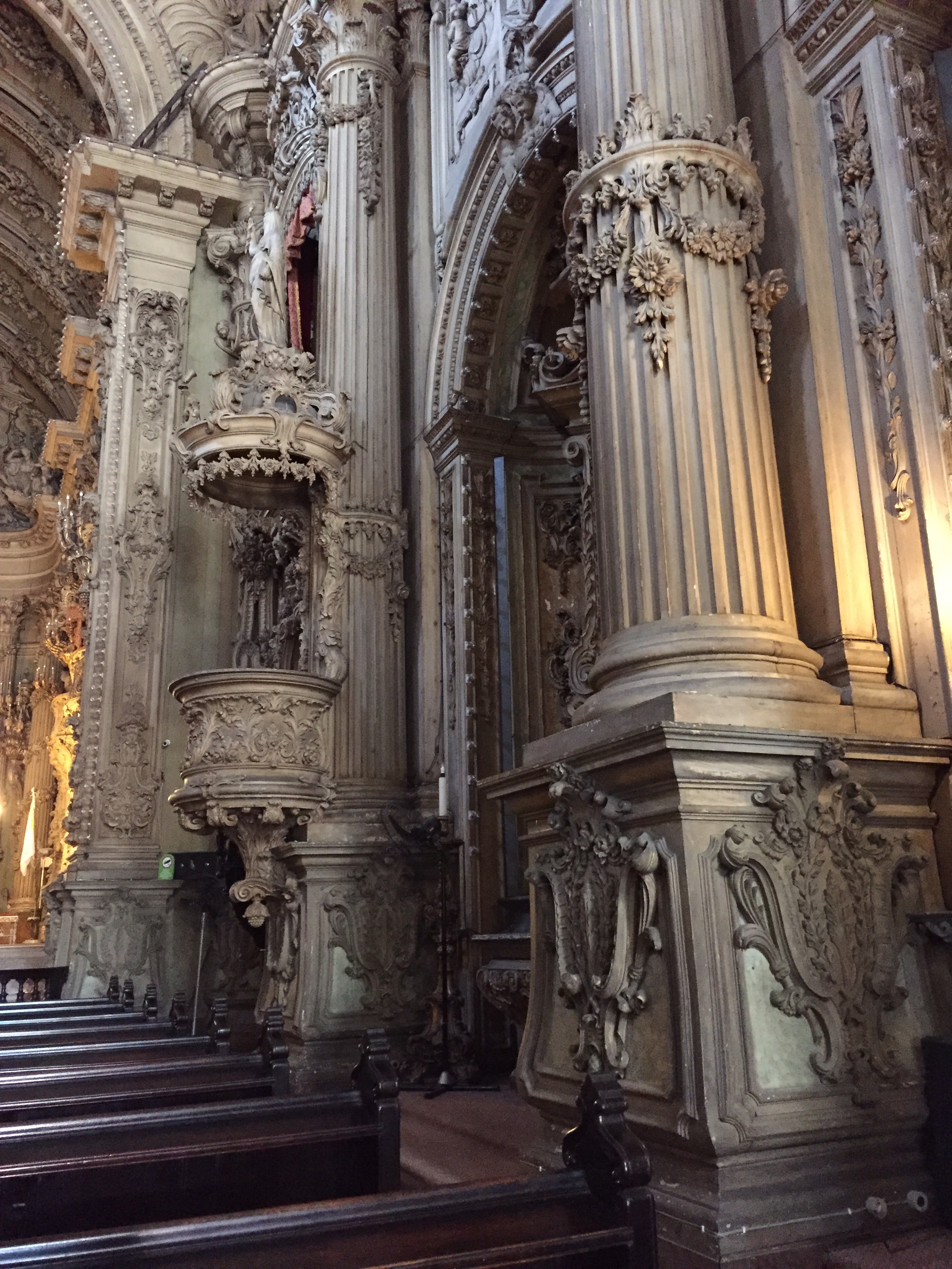 Toda essa beleza de que se compõe a igreja, compreendendo o entalhamento, as colunas de granito e de mármore que tanto agradam aos olhos e emprestam incomparável distinção ao santuário foi, um dia, amparado pelo mau gosto de administrações passadas.