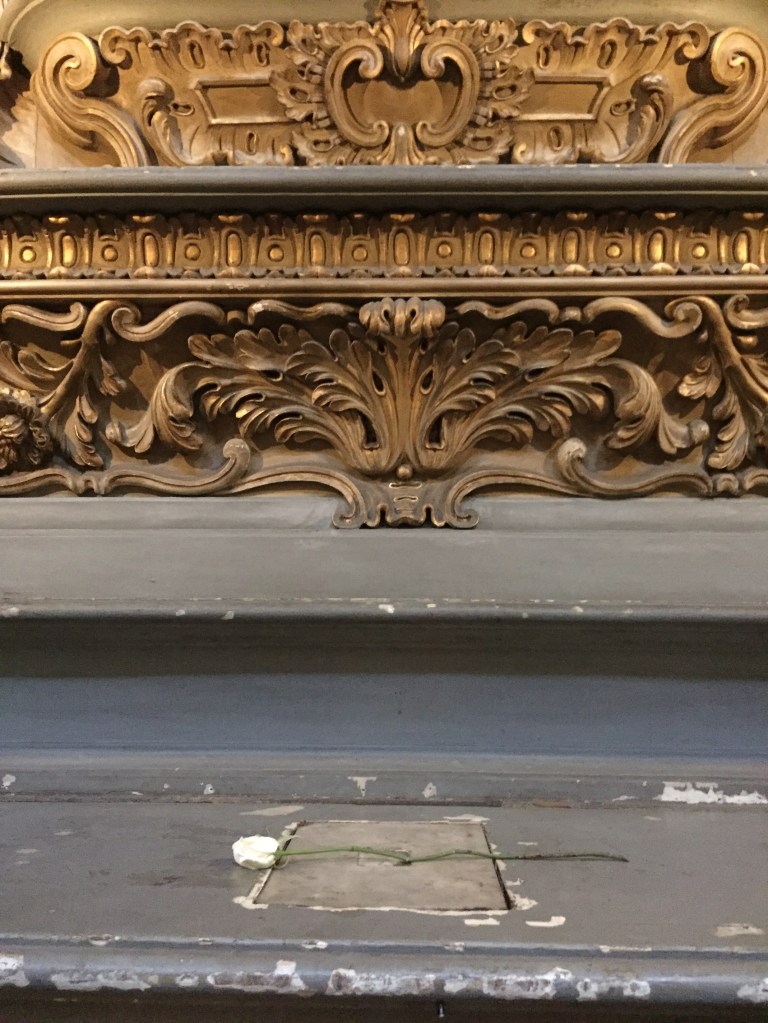 Deixaram uma rosa branca em uma das catacumbas.
