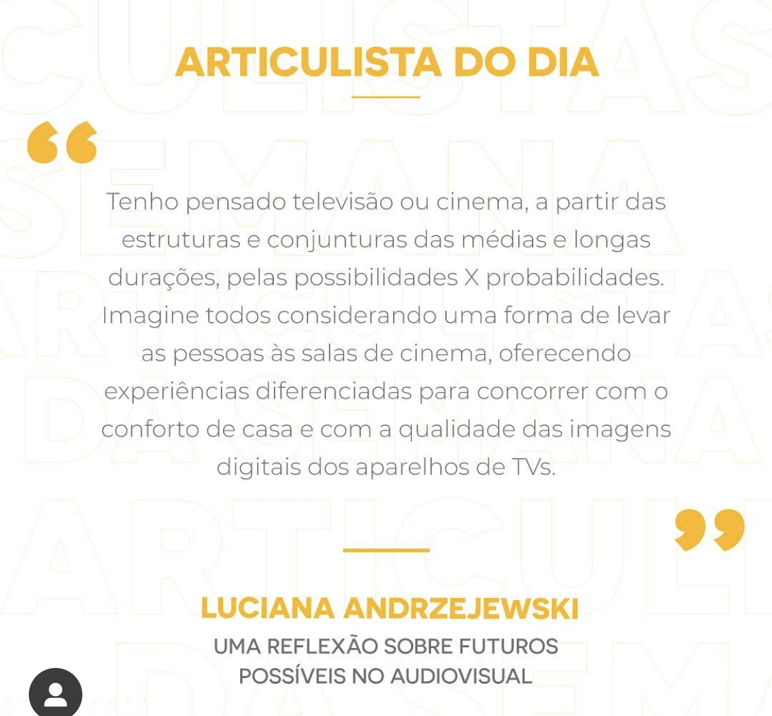26/05/2021 REVISTA EXIBIDOR https://www.exibidor.com.br/artigo/320-uma-reflexao-sobre-futuros-possiveis-no-audiovisual Compartilhe isso: Compartilhar no Facebook(abre em nova janela) Facebook Compartilhe no Linkedin(abre em nova janela) LinkedIn Share on Pinterest(abre em nova janela) Pinterest Compartilhar no WhatsApp(abre em nova janela) WhatsApp Curtir Carregando... Relacionado