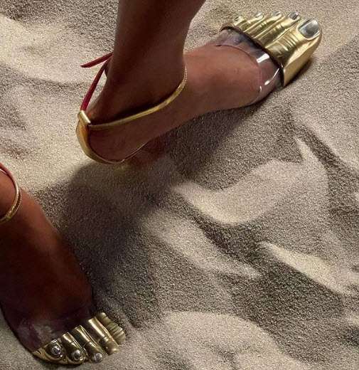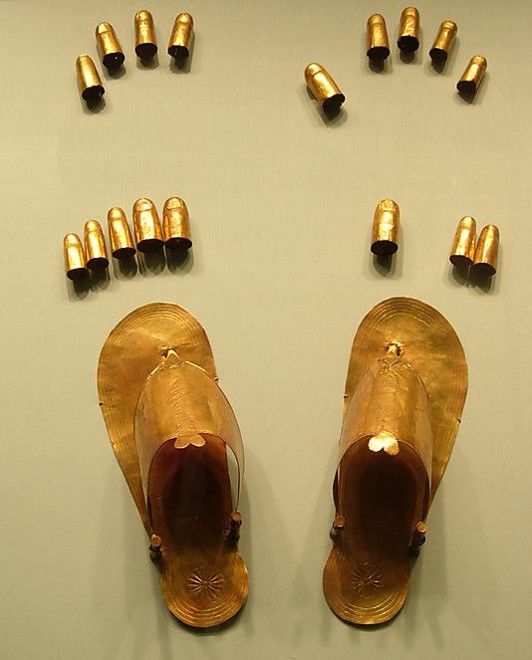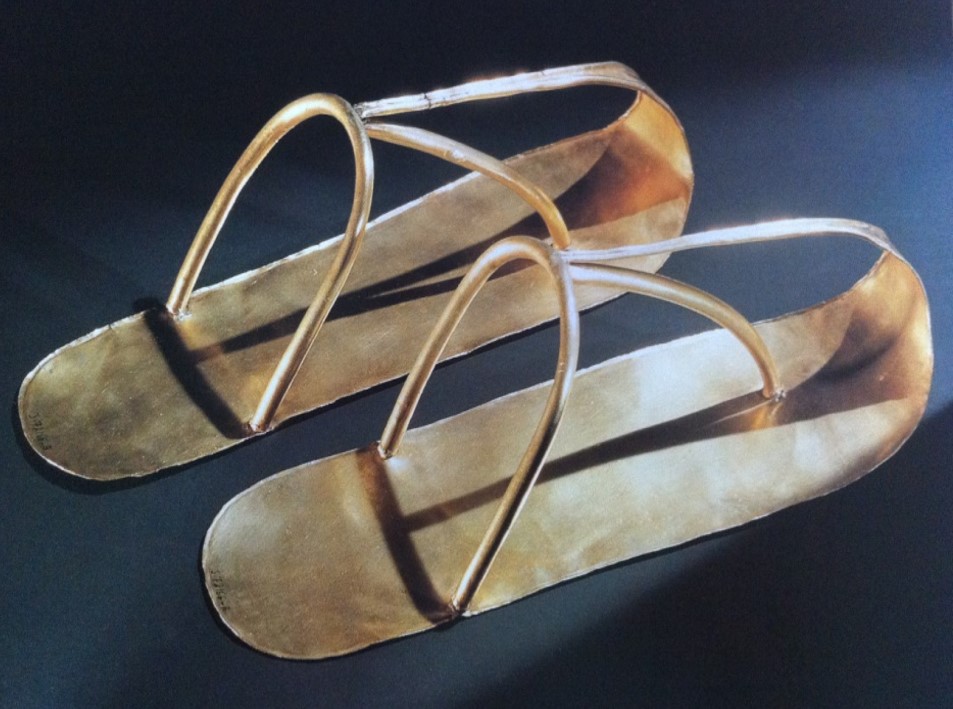 Pura estética? Ou alguma mensagem oculta digna das sandálias de ouro encontradas junto ao corpo mumificado do Rei Shoshenk II, que asseguravam nessa representação que o rei estaria calçado na vida após a morte?