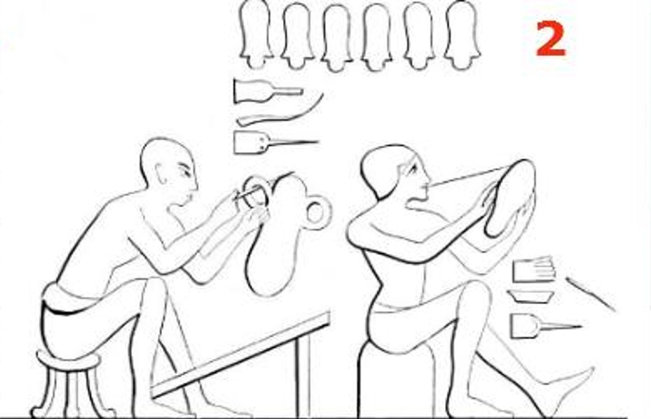 E ainda tem também, Rekh-Re-Mi, um vizir da 18ª dinastia, que no seu túmulo foi encontrado uma representação com fabricantes de sandálias e suas ferramentas…