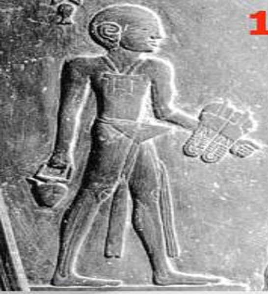 Ou do faraó Narmer (3.000 a.C) que andava descalço e possuía um funcionário, cujo o título de nobreza era uma coisa parecida como “Sandálias Porta Rei”, este representado em vários hieróglifos (como na imagem abaixo).